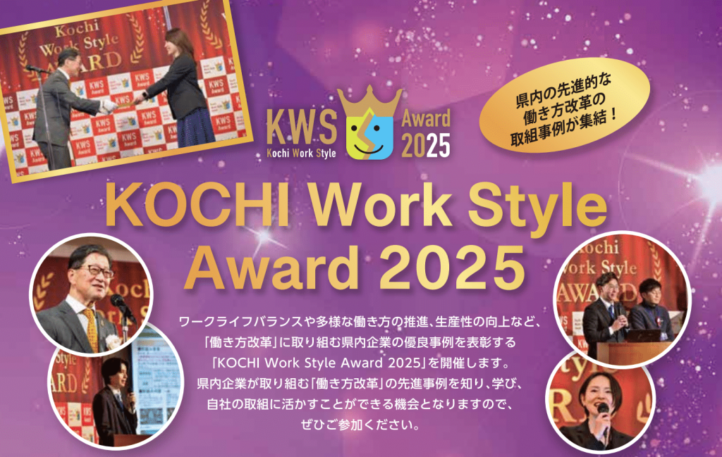 ワークライフバランスや多様な働き方の推進、生産性の向上など、「働き方改革」に取り組む県内企業の優良事例を表彰する「KOCHI Work Style Award 2025」が、2026年1月26日(月)に開催されます。